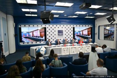 10 июля в ИА ТАСС состоялась пресс-конференция КПРФ. В ней приняли участие Председатель ЦК КПРФ Г.А. Зюганов, первый заместитель Председателя ЦК КПРФ Ю.В. Афонин, заместитель Председателя ЦК КПРФ Д.Г. Новиков, член Президиума, секретарь ЦК КПРФ М.В. Дробот, секретарь ЦК КПРФ А.А. Ющенко.
