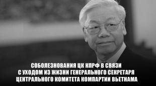 Центральный комитет Коммунистической партии Российской Федерации, все российские коммунисты выражают глубокую скорбь в связи с кончиной Генерального секретаря Центрального комитета Коммунистической партии Вьетнама товарища Нгуен Фу Чонга.