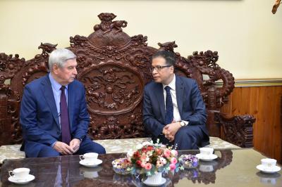 После церемонии прощания состоялась краткая беседа между Иван Мельниковым и Чрезвычайным и Полномочным Послом Социалистической Республики Вьетнам в Российской Федерации Данг Минь Кхоем.