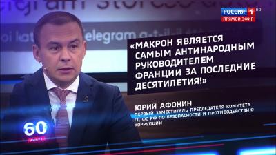 Первый заместитель Председателя ЦК КПРФ Ю. В. Афонин выступил в программе «60 минут» на телеканале «Россия-1».