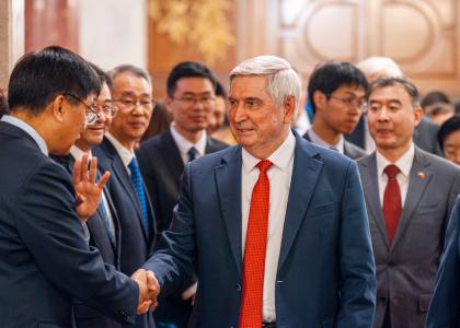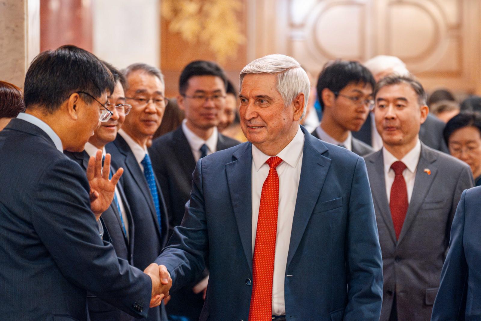 С российской стороны на приеме выступил Первый заместитель Председателя Государственной Думы ФС РФ, Председатель Общества российско-китайской дружбы Иван Мельников.