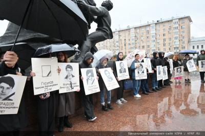 — Уважаемые товарищи, безусловно, есть преступления, которым нет оправдания, — к ним относится и расстрел Дома Советов 4 октября 1993 года, который глубокой болью отзывается в наших сердцах. Стоящие сейчас здесь молодые ребята не застали тех кровавых событий, но они чувствуют сердцем всю чудовищную несправедливость преступления, произошедшего в «чёрном октябре». Опять взгляните на лозунги, которые держат ребята — многим из них нет и 18 лет.
