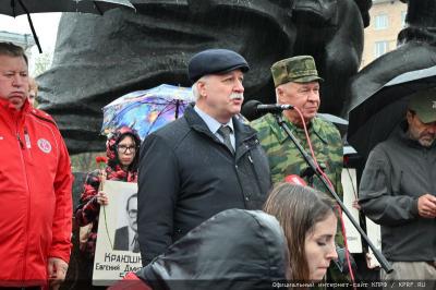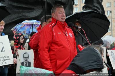 - Уважаемые товарищи, здесь мы, как всегда, собрались, чтобы почтить память защитников Дома Советов. Сегодня в этот день по погибшим героям символически плачет небо. Сегодня всем нам понятно, на чьих руках кровь жертв — на ельцинской клике двурушников и предателей великой Страны Советов. Но, всему этому предшествовало предательство верхушки страны, которая во главе с Горбачёвым и Яковлевым прилагала все усилия, чтобы ослабить и разрушить нашу великую Родину! – подчеркнул В.И. Кашин.