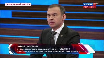 Первый заместитель Председателя ЦК КПРФ Ю.В. Афонин выступил в программе «60 минут» на телеканале «Россия-1».