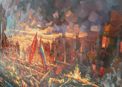 Работы художника, представленные в экспозиции, посвящены событиям на Донбассе, начиная с Русской весны – восстания русского народа против фашистского переворота в 2014 году, до сегодняшней специальной военной операции. Картины отражают героизм ополченца, русского солдата-освободителя, который в новом сражении с неонацизмом опирается на великий советский символ – Красное Знамя Победы.