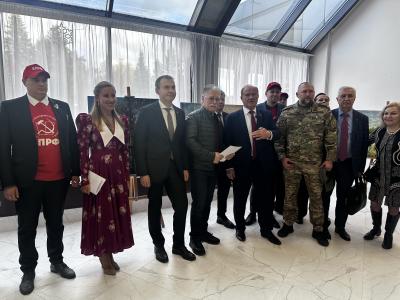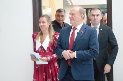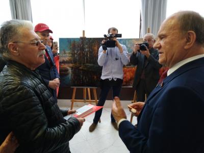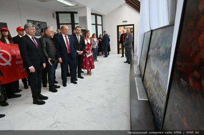 В ходе X (октябрьского) Пленума ЦК КПРФ в холле главного корпуса ДО «Снегири» лидер КПРФ и Народно-патриотических сил России Г.А. Зюганов открыл выставку картин «Донбасс, мы с тобой». В торжественной церемонии открытия также приняли участие Первый заместитель Председателя ЦК КПРФ Ю.В. Афонин, заместитель Председателя ЦК КПРФ Д.Г. Новиков, Управляющий делами ЦК КПРФ Н.И. Осадчий, советник Председателя ЦК КПРФ М.Г. Образцова, Руководитель Группы региональных политтехнологов Отдела ЦК КПРФ по проведению избирательных кампаний А.В. Червонцев. На выставке присутствовал командир одного из боевых подразделений с позывным Чип – Герой Донецкой Народной Республики.