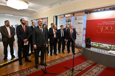 На выставке представлены макеты главного корпуса СПбГУ – здания двенадцати коллегий и будущего кампуса "Территория развития СПбГУ", а также информация о выпускниках, которые стали лауреатами Нобелевской премии или внесли значительный вклад в развитие России.