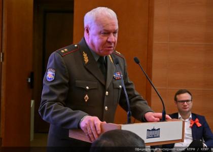 Далее слово было предоставлено заместителю Председателя ЦК КПРФ, почетному председателю РУСО, академику РАН, председателю Комитета Государственной Думы по аграрным вопросам В.И. Кашину. В своем выступлении Владимир Иванович напомнил присутствующим о предпосылках Великой Октябрьской социалистической революции, роли большевиков и В.И. Ленина в построении государства нового типа, коллективизации и индустриализации, вкладе героического советского народа, среди которых в первых рядах шли коммунисты и комсомольцы, в разгром фашисткой Германией. Также он представил финансово-экономическую программу КПРФ.