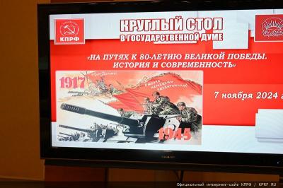 7 ноября, в 107-ю годовщину Великой Октябрьской социалистической революции, в Государственной Думе состоялся круглый стол на тему: «На путях к 80-летию Великой Победы. История и современность». Организаторами мероприятия стала фракция КПРФ в Государственной Думе ФС РФ и общественная организация «Российские ученые социалистической ориентации» (РУСО).