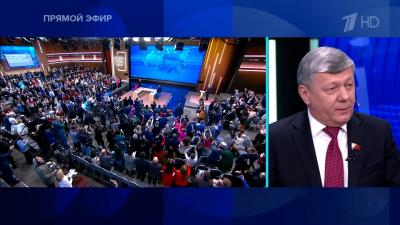 Темой программы стала совмещённая пресс-конференция и «Прямая линия» с президентом. Дмитрий Новиков признался, что ему как человеку, который работает в Комитете Государственной Думы по международным делам, чрезвычайно интересна и важна точка зрения главы государства на вопросы внешней политики. Тем более что, по законодательству Российской Федерации, именно глава государства её и формирует.