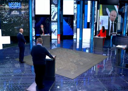 В эфире российских телеканалов продолжают обсуждать заявления президента страны на его “Прямой линии”. Касается это и украинской тематики.