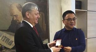 По завершении беседы членам делегации Института управления провинции Цзянси были вручены партийные сувениры с символикой КПРФ.