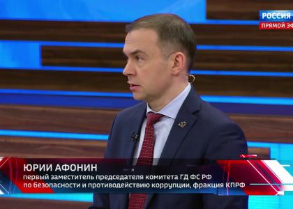 Первый заместитель Председателя ЦК КПРФ Ю.В. Афонин выступил в программе «60 минут» на телеканале «Россия-1».