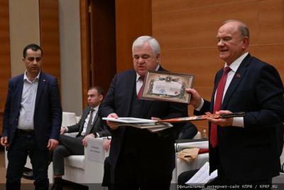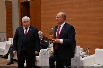 На заседании фракции КПРФ Казбек Куцукович передал Геннадию Андреевичу гостинцы от Апти Ароновича и наших военных.