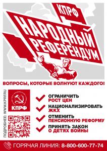 Коммунистическая партия Российской Федерации объявила о начале масштабного народного референдума, на который выносятся следующие вопросы: