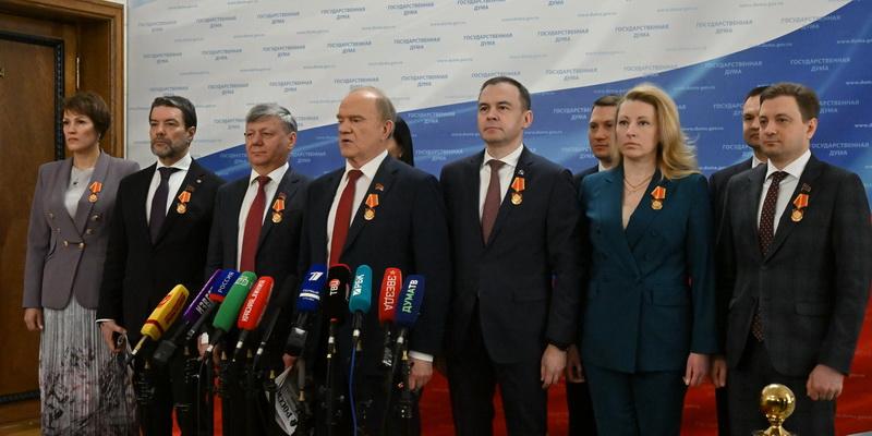 Эта медаль будет вручена ветеранам вооруженных сил и участникам СВО. Сегодня мы вручили эту медаль депутатам нашей фракции. Депутаты КПРФ активно помогают тем, кто активно сражается против нацизма и фашизма.