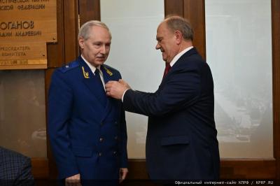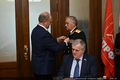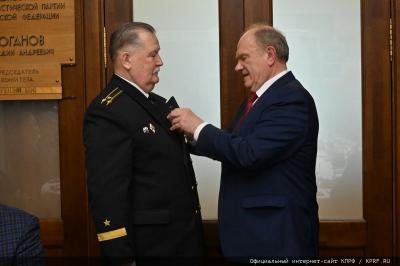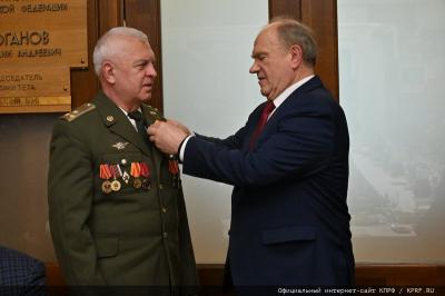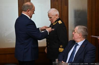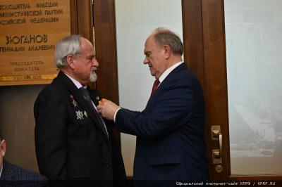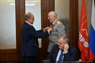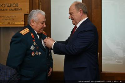 Лидер КПРФ поздравил уважаемых граждан России с праздничной датой, поблагодарил за участие в патриотическом воспитании молодежи и пожелал им крепкого здоровья. Г.А. Зюганов наградил ветеранов памятной медалью ЦК КПРФ к 80-летию Великой Победы.