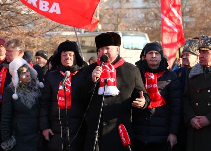 - Товарищи! Я смотрю сейчас на вас: многих я знаю в лицо. Вы каждый год приходите на митинги КПРФ и тем самым вносите свой вклад в борьбу за социализм.