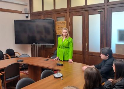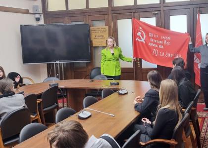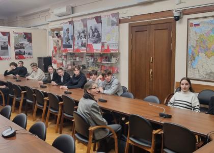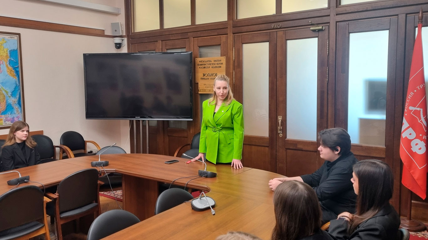 Во фракции КПРФ школьников встретила заместитель председателя Комитета по защите семьи, вопросам отцовства, материнства и детства Мария Дробот. Она подчеркнула важность изучения истории, напомнила о грядущем 80-летии Победы и показала ученикам, как выглядит Знамя Победы — символ героического подвига советского народа. Ребята в ответ поделились историями о своих родственниках — участниках Великой Отечественной войны.