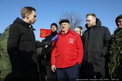 Хочу поблагодарить Казбека Тайсаева, который со своей командой только что вернулся с Донбасса. Проехали все передовую, были у бойцов, командиров, встречались с нашим активом. Провели партийное собрание и конференции, еще раз продемонстрировав, что наша партия, которая первой восстала против нацизма и фашизма, нашествия ельцинизма и высоко подняла Знамя Победы и гордо его несет над нашей планетой.