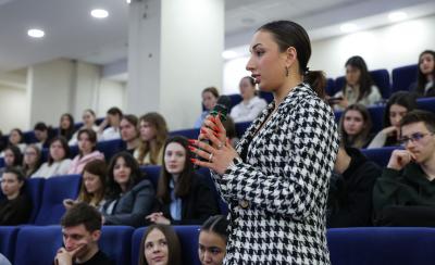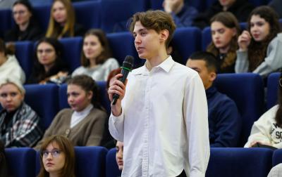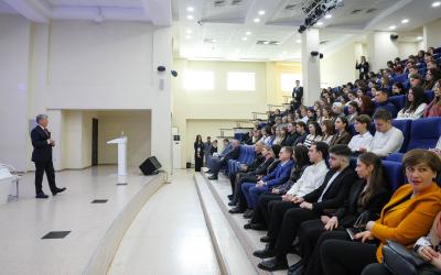 Вторая часть встречи со студентами Северо-Кавказского федерального университета прошла в форме беседы. В ходе неё участники публичной лекции задавали вопросы по волнующим их темам.