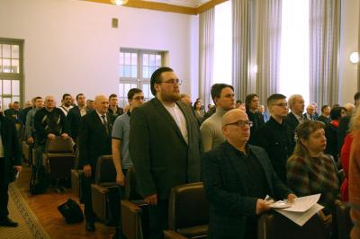 После был утвержден состав президиума, секретариата, счетной, мандатной и редакционной комиссий. По традиции перед началом работы конференции Анатолий Локоть и Юрий Афонин вручили партбилеты новым членам партии. Среди вновь вступивших — работники предприятий, студенты, вдова участника специальной военной операции.