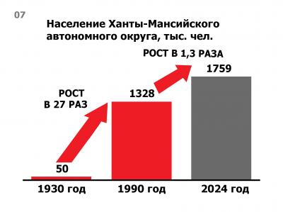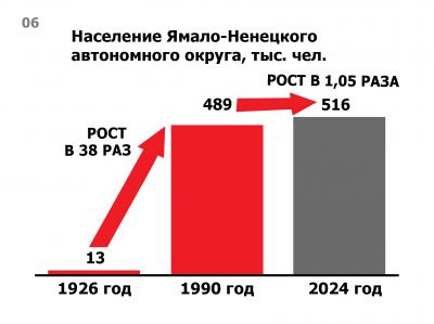 Гигантский рост населения этих двух округов в советскую эпоху – в 30-40 раз – напоминает нам о фундаментальном историческом факте: именно во времена СССР был создан колоссальный нефтегазовый комплекс Западной Сибири, который до сих пор в значительной степени кормит нашу страну.