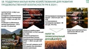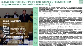 Хочу ещё раз обратить внимание на обустройство деревни, на нашу программу. Это действительно великая программа. Нам далась она не просто. Мы проводили пленарное заседание, слушания, подключился Володин, и все без исключения руководители фракций нас поддержали. Тогда Жириновский был жив, я делал доклад, Ткачёв — содоклад. В результате появилась программа, и многое из этого уже делается.