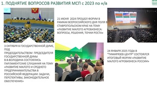 Наш Министр и вице-премьер на протяжении года регулярно проводят встречи с представителями аграрного малого бизнеса, в том числе в Ставропольском крае, здесь в Москве и других ключевых регионах. Аграрный комитет Госдумы организует масштабные обсуждения насущных вопросов АПК. В рамках крупных мероприятий, посвящённых развитию Целины, Нечерноземья, мы собирали несколько округов федеральных на Алтае и Ленинградской области. Параллельно Владимир Николаевич Плотников собирает членов АККОР, обсуждая ключевые темы непосредственно с представителями фермерского сообщества.