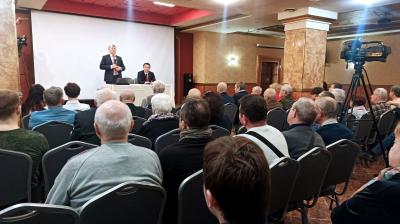 Продолжается визит заместителя председателя ЦК КПРФ Д.Г. Новикова во Владимир. 22 марта в конференц-зале гостиницы «Золотое кольцо» Дмитрий Георгиевич прочитал лекцию на тему «Современный мир, угрозы нацификации и контуры будущего».