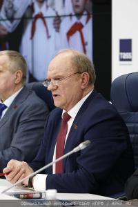 27 марта в ИА ТАСС состоялась пресс-конференция руководства Компартии, посвященная отчету правительства РФ в Государственной Думе и реализации «Программы Победы» КПРФ. В ней приняли участие Председатель ЦК КПРФ Г.А. Зюганов, первый заместитель Председателя ЦК КПРФ Ю.В. Афонин, член Президиума, секретарь ЦК КПРФ Н.В. Коломейцев, секретарь ЦК КПРФ, Руководитель пресс-службы ЦК КПРФ А.А. Ющенко.