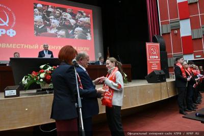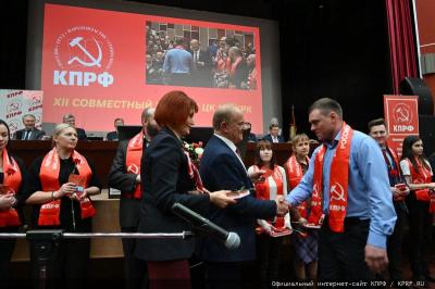 Затем состоялось вручение партийный билетов. Лидер КПРФ пожелал новому пополнению КПРФ быть верными защитниками Родины и честно трудиться во благо народа.