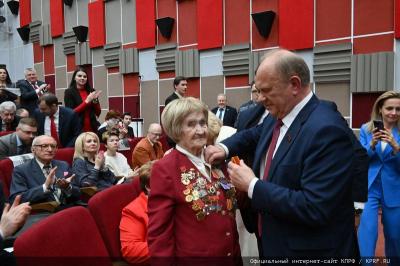 Затем состоялась церемония вручения памятной медали ЦК КПРФ «80 лет Победы». В числе награжденных ветераны партии И.И. Казанков, Г.П. Фоменко, Н.В. Разворотнев, В.П. Ижицкий, Е.И. Колюшина, А.Е. Клычкова, В.О. Коновалов.