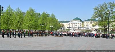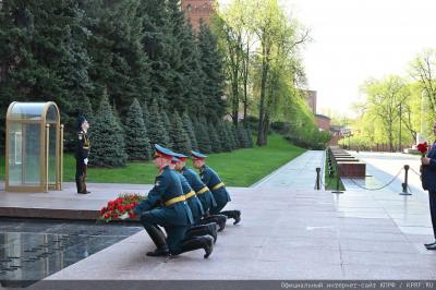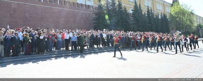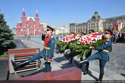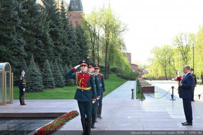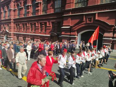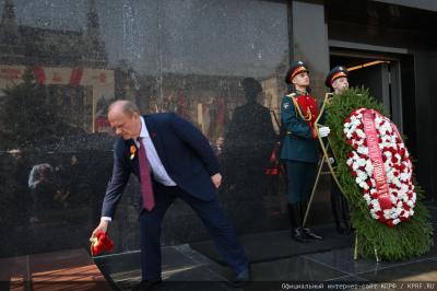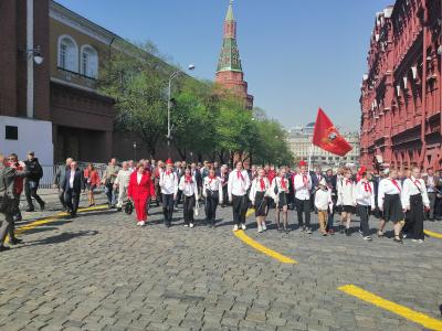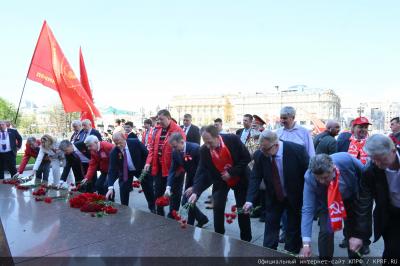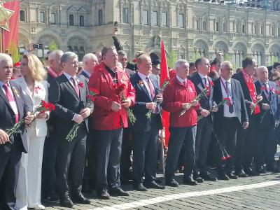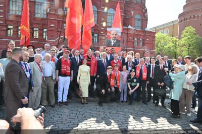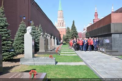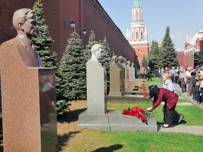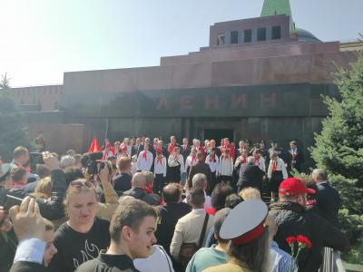 Вначале Красная колонна с Манежной площади проследовала к Вечному огню на Могиле Неизвестного Солдата в Александровском саду. Затем акция продолжилась у Мавзолея В.И. Ленина на Красной площади, где состоялась церемония возложения венков и цветов в память об основателе Советского государства.