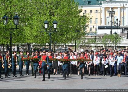 Мы поклонились Могиле Неизвестного Солдата и вместе с нашими гостями сейчас поедем на Поклонную гору и в Музей Великой Отечественной войны.