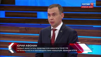 Первый заместитель Председателя ЦК КПРФ Ю.В. Афонин выступил в программе «60 минут» на телеканале «Россия-1».