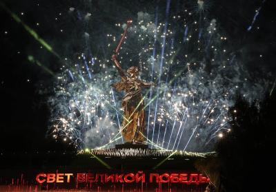 На Мамаевом кургане состоялся показ мультимедийной инсталляции «Свет Великой Победы». Ее зрителями стали Председатель Государственной Думы Вячеслав Володин, депутаты, а также члены иностранных делегаций парламентариев, прибывших на форум.