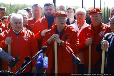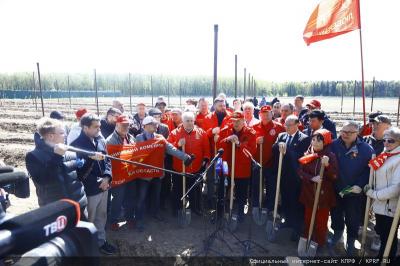 В своём приветственном слове Г.А. Зюганов сообщил, что мероприятие приурочено к 80-летию Великой Победы — сегодня к заложенным ранее 10 гектарам Сада Победы прибавится еще один гектар яблоневых деревьев.