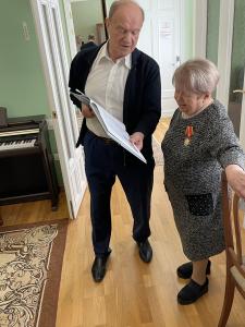 Председатель ЦК КПРФ Геннадий Зюганов наградил выдающегося советского композитора Александру Пахмутову памятной медалью «80 лет Великой Победы».