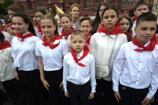КПРФ провела торжественный прием школьников в пионеры на Красной площади.