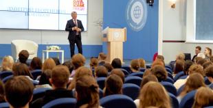 В ходе диалога с ребятами Дмитрий Новиков поделился опытом работы в Государственной думе, рассказал об особенностях деятельности парламентских комитетов. Первым в его депутатской практике стал Комитет по культуре, где работало много интересных людей: руководители театров из региональных столиц, крупные администраторы, знаменитая прима-балерина Большого театра Светлана Захарова, которая сейчас является инициатором важных гуманитарных проектов для талантливых детей. В целом это был интересный и важный период.