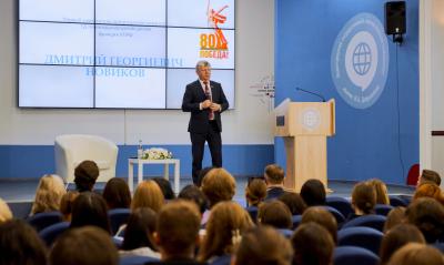 В ходе диалога с ребятами Дмитрий Новиков поделился опытом работы в Государственной думе, рассказал об особенностях деятельности парламентских комитетов. Первым в его депутатской практике стал Комитет по культуре, где работало много интересных людей: руководители театров из региональных столиц, крупные администраторы, знаменитая прима-балерина Большого театра Светлана Захарова, которая сейчас является инициатором важных гуманитарных проектов для талантливых детей. В целом это был интересный и важный период.