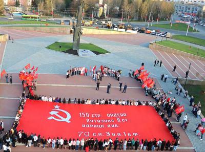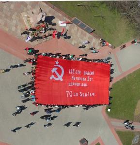 Символом организованного Компартией Международного антифашистского патриотического автомарша-эстафеты «Наша Великая Победа» стала копия Знамени Победы, водружённого советскими солдатами над Рейхстагом в мае 1945 года. Мало кто сейчас вспоминает о том, что совсем недавно КПРФ отстаивала необходимость более широкого использования копии Знамени Победы в праздничном оформлении Москвы в дни памятных дат, связанных с Великой Отечественной войной. О том, как партия боролась против кощунственной инициативы стереть с красного полотнища Победы изображение серпа и молота…