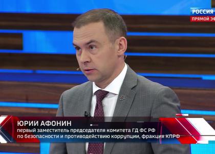 Первый заместитель Председателя ЦК КПРФ Ю. В. Афонин выступил в программе «60 минут» на телеканале «Россия-1».