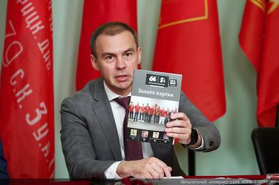 Мы можем гордиться и нашей спортивной вертикалью. Вот здесь, рядом, мой первый заместитель, руководитель нашего спортивного клуба Мельников. Мы стали абсолютными чемпионами по мини-футболу. Мы впервые выиграли кубок, разгромив в финальном матче «Норильский никель» со счетом 7:2.