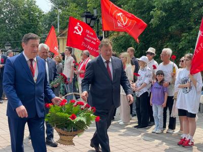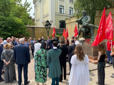 В.И. Кашин и первый секретарь крайкома КПРФ В.И. Гончаров вместе с почетными гостями возложили цветы к памятнику А.С. Пушкину. После этого Владимир Иванович выступил перед журналистами. Он подчеркнул, что главные идеи наследия великого поэта – справедливость, патриотизм и гуманизм - партия считает наиболее актуальными сегодня в борьбе против либерально-буржуазной идеологии.