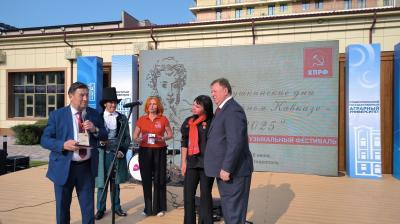 Владимир Иванович вручил Благодарственные письма Государственной Думы РФ и юбилейные медали ЦК КПРФ организаторам фестиваля.