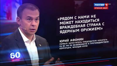 Первый заместитель Председателя ЦК КПРФ Ю.В. Афонин выступил в программе «60 минут» на телеканале «Россия-1».