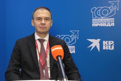 Первый заместитель председателя ЦК КПРФ Юрий Вячеславович Афонин - с политобозревателем KP.RU Александром Гамовым - на полях Петербургского международного экономического форума