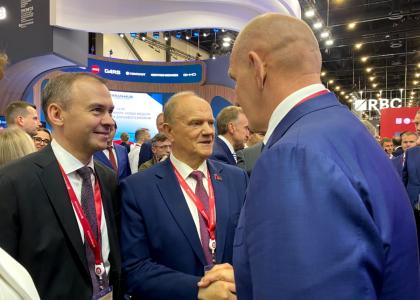 Лидер КПРФ, Герой труда России с политобозревателем КП Александром Гамовым на полях Петербургского международного экономического форума
